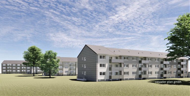 Nachdem der erste Bauabschnitt im Oktober 2022 an ein Generalunternehmen vergeben worden ist, wurde im Februar 2023 mit der Bauausführung der ersten beiden Häuser-Blöcke der Siedlung Köln-Holweide begonnen.