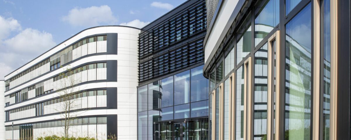 Auf PHOENIX-West in Dortmund ist die neue Hauptverwaltung der Amprion mit ca. 900 Arbeitsplätzen und einer Tiefgarage mit ca. 550 Stellplätzen entstanden. Die Architektur des Bürogebäudes besteht aus drei V-förmig angeordneten Bürokomplexen, die in der Mitte über ein großzügiges Foyer / Atrium miteinander verbunden sind.